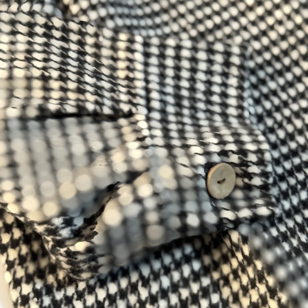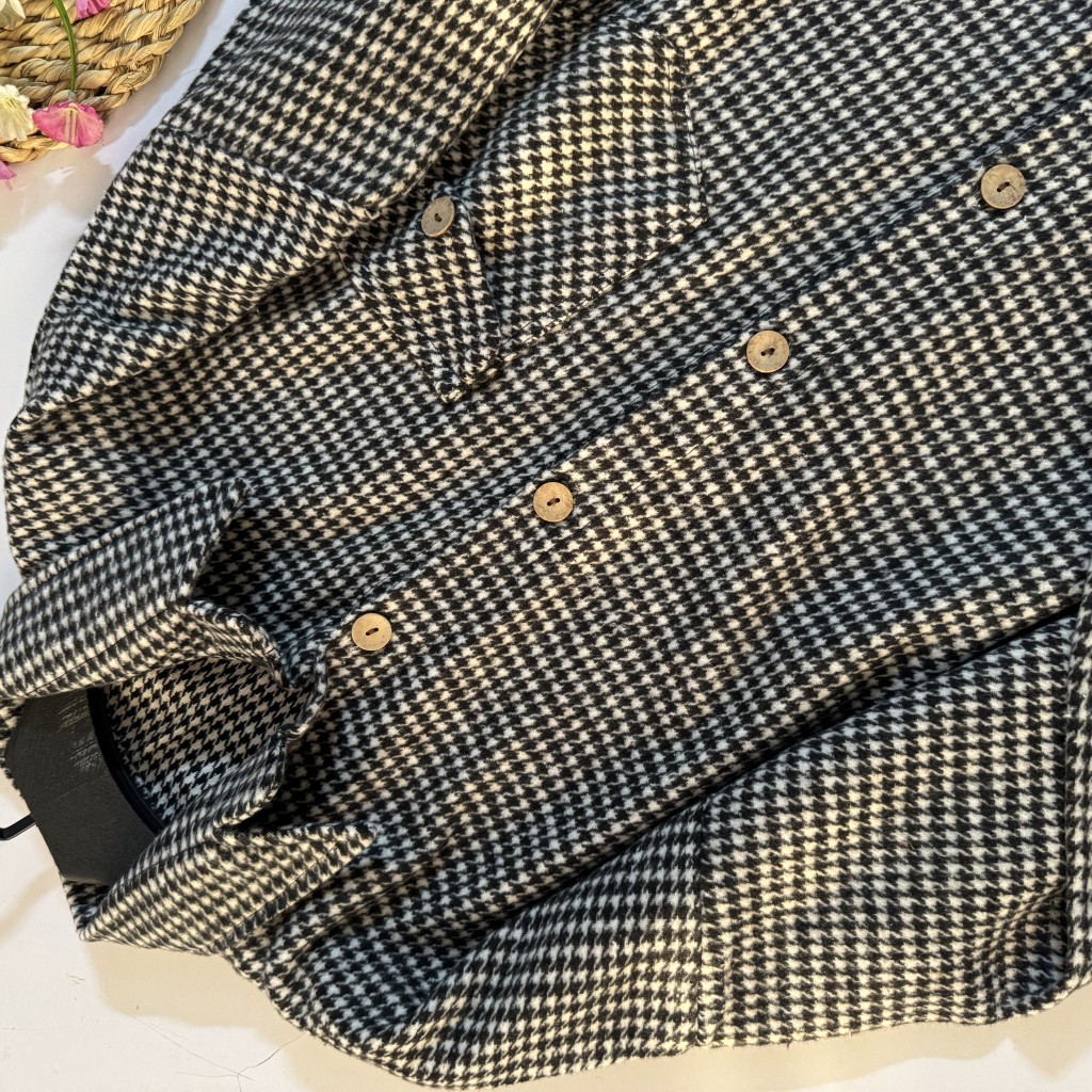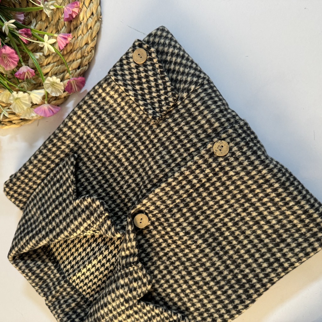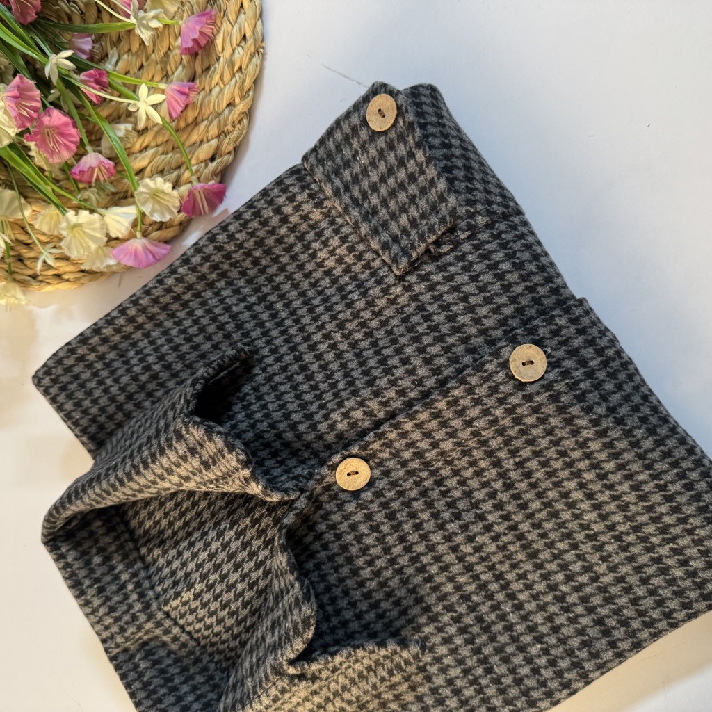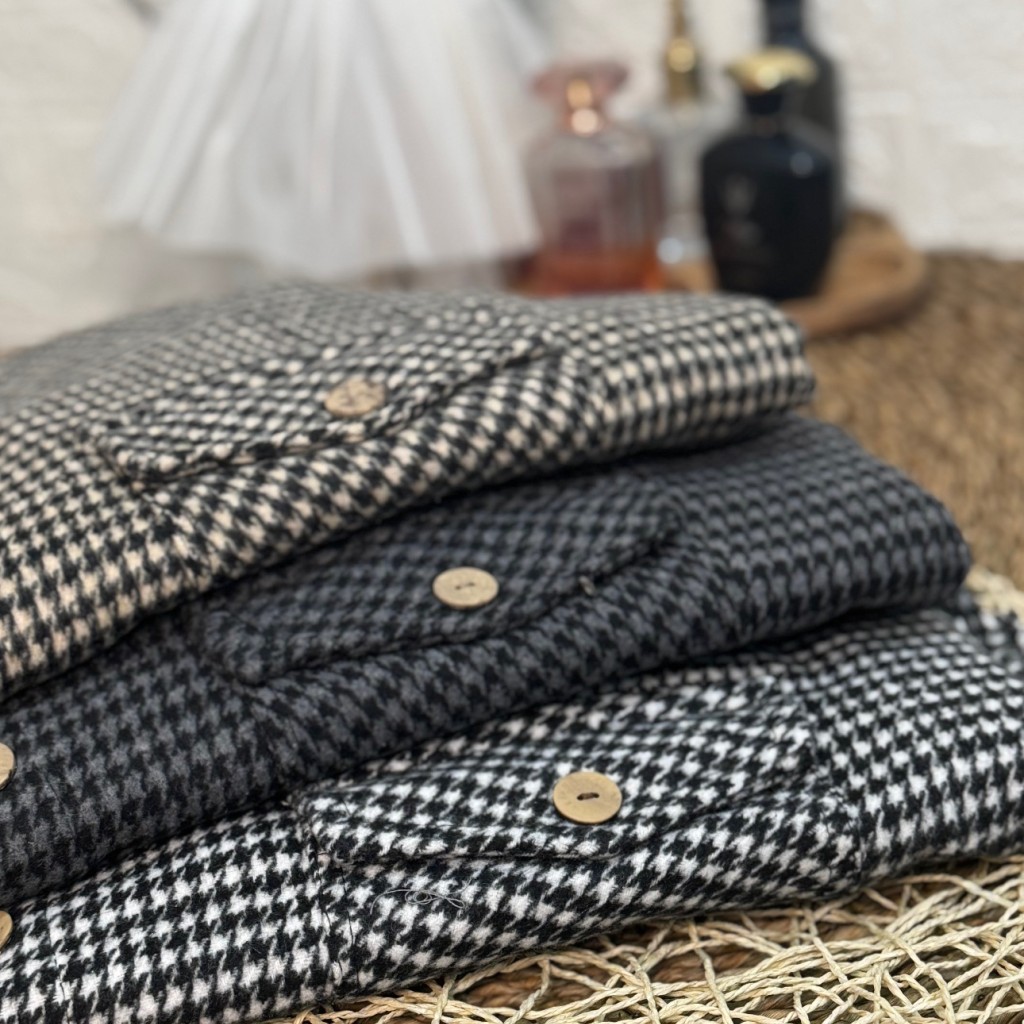 مانتو پشمی کژوال، از جنس پشمی نرم و راحت، با طراحی مدرن و شیک. دارای جیب روی سینه، آستین مچ و طراحی هلالی در پایین، مناسب برای محیطهای کاری و دانشگاه. در رنگهای عسلی، نو کمپانی، سیاه و سفید با طرحهای ریز