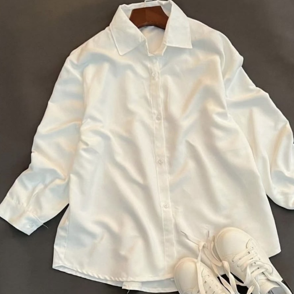 شومیز سفید شیک و راحت، مناسب استایل روزمره و رسمی. دوخت تمیز و پارچه داکرون نخ با کیفیت بالا، بدون آبرفت